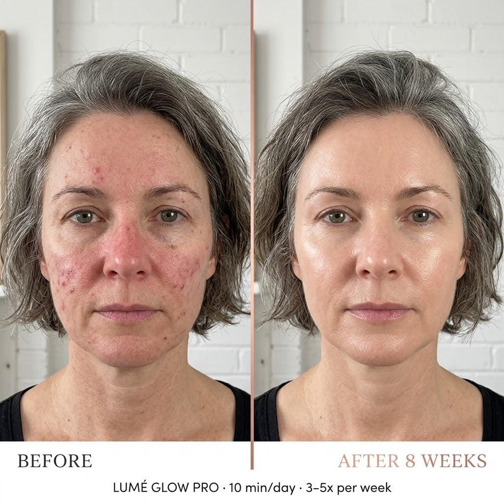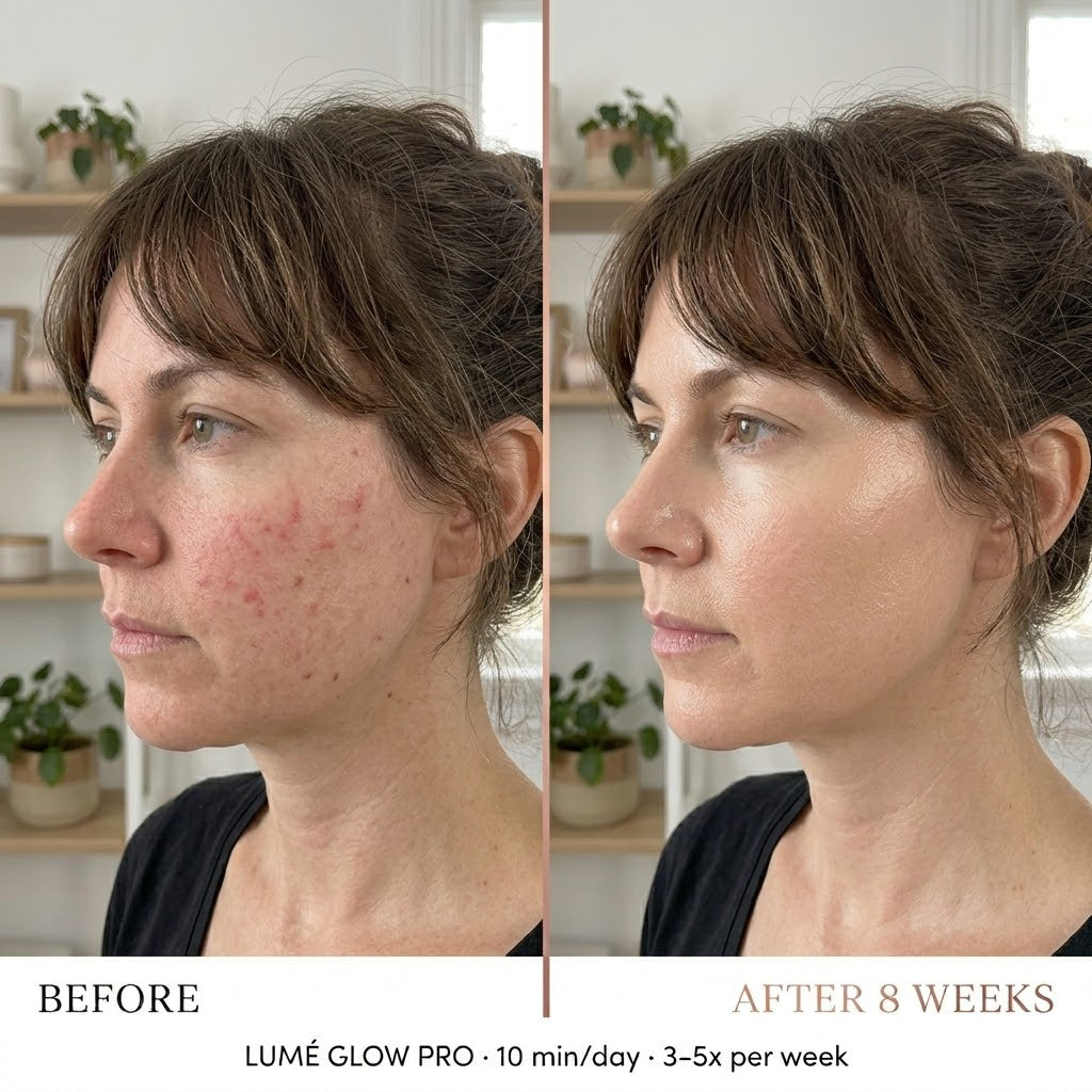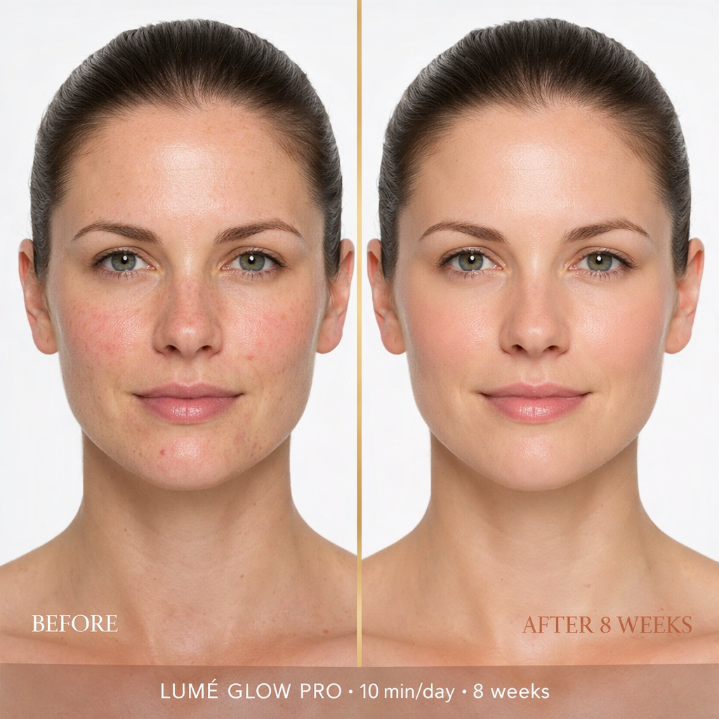 LUMÉ GLOW brings the same professional technology home. One mask. Seven modes. Real, visible results — in as little as 8 weeks.