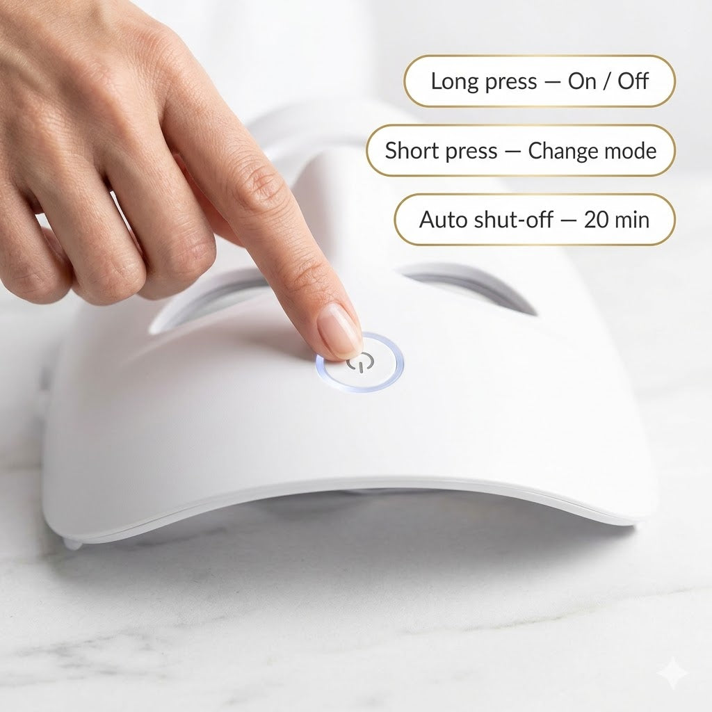 ✦ Built-in timer — automatic shut-off after 10 or 20 min