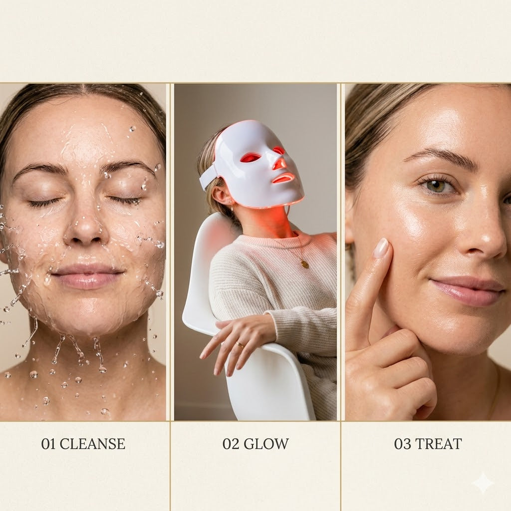 Apply your favourite serum or moisturiser immediately after — LED therapy opens your pores for deeper absorption. -